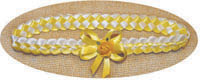 "DIADEMA AMARILLO CANARIO CON BLANCO, CON ADORNO DE MOÑO Y FLOR "