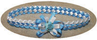 "DIADEMA AZUL CIAN CON BLANCO, CON ADORNO DE MOÑO Y FLOR "